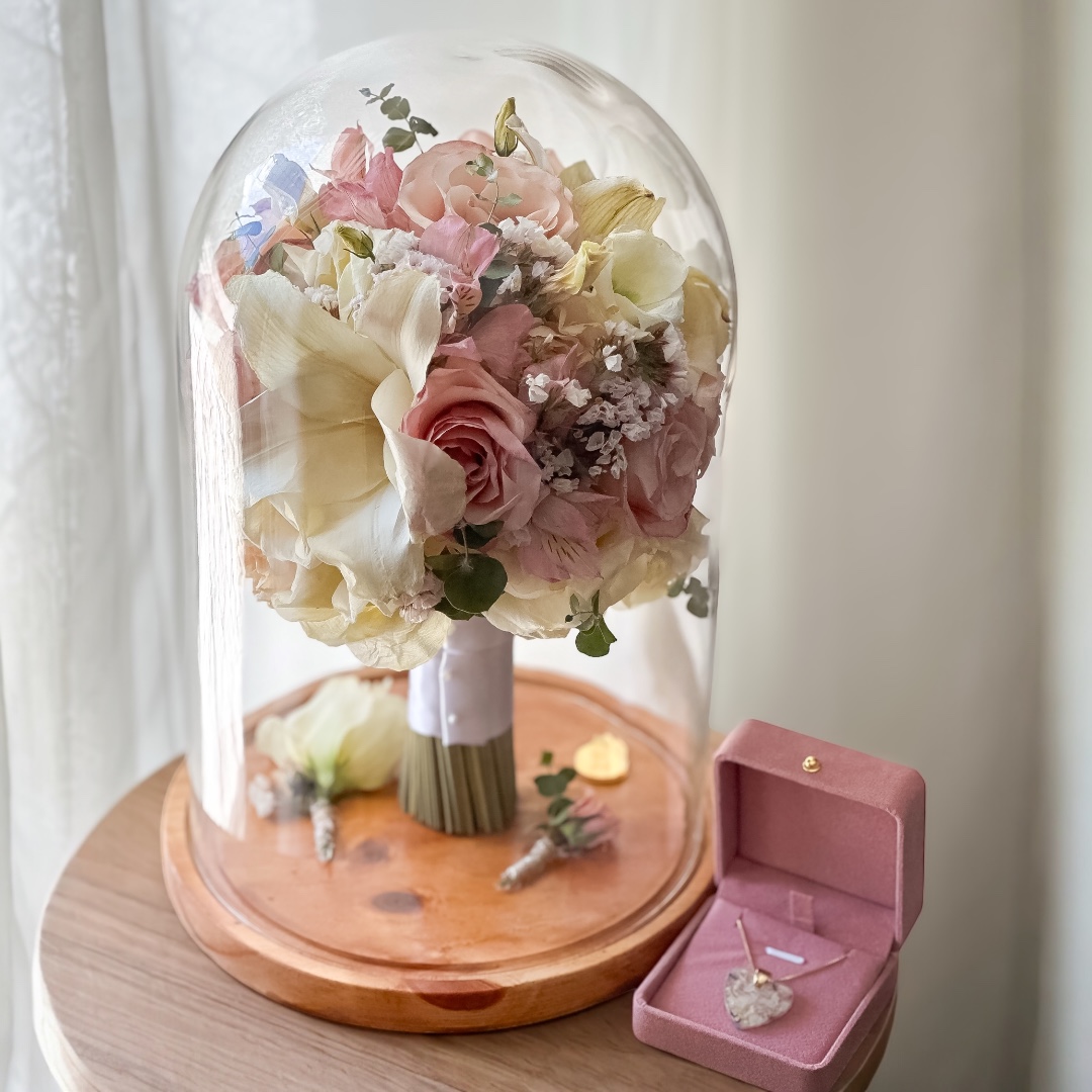 Seu buquê transformado em uma obra de arte.