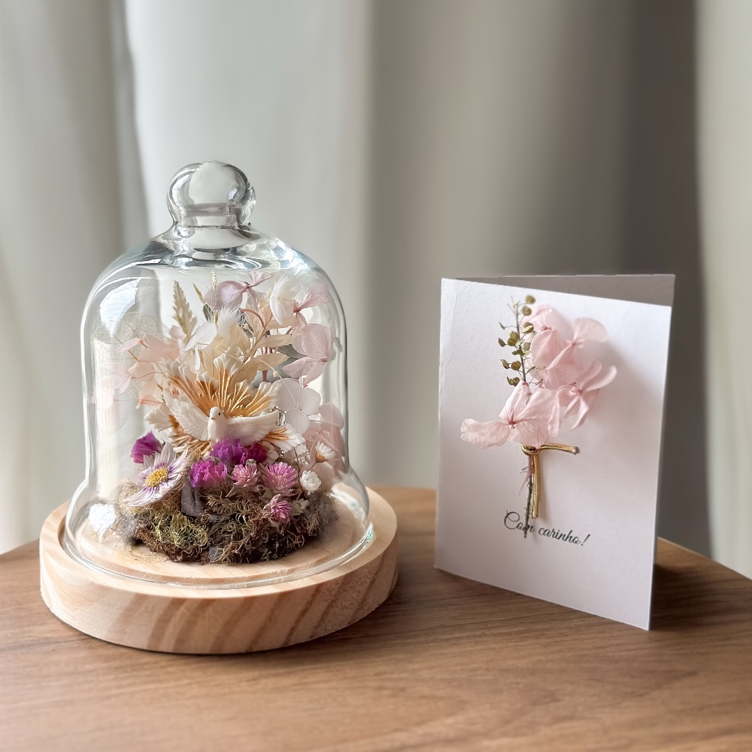 A Redoma Floral Espírito Santo fica linda na decoração, além de ser uma ótima opção para presentear.